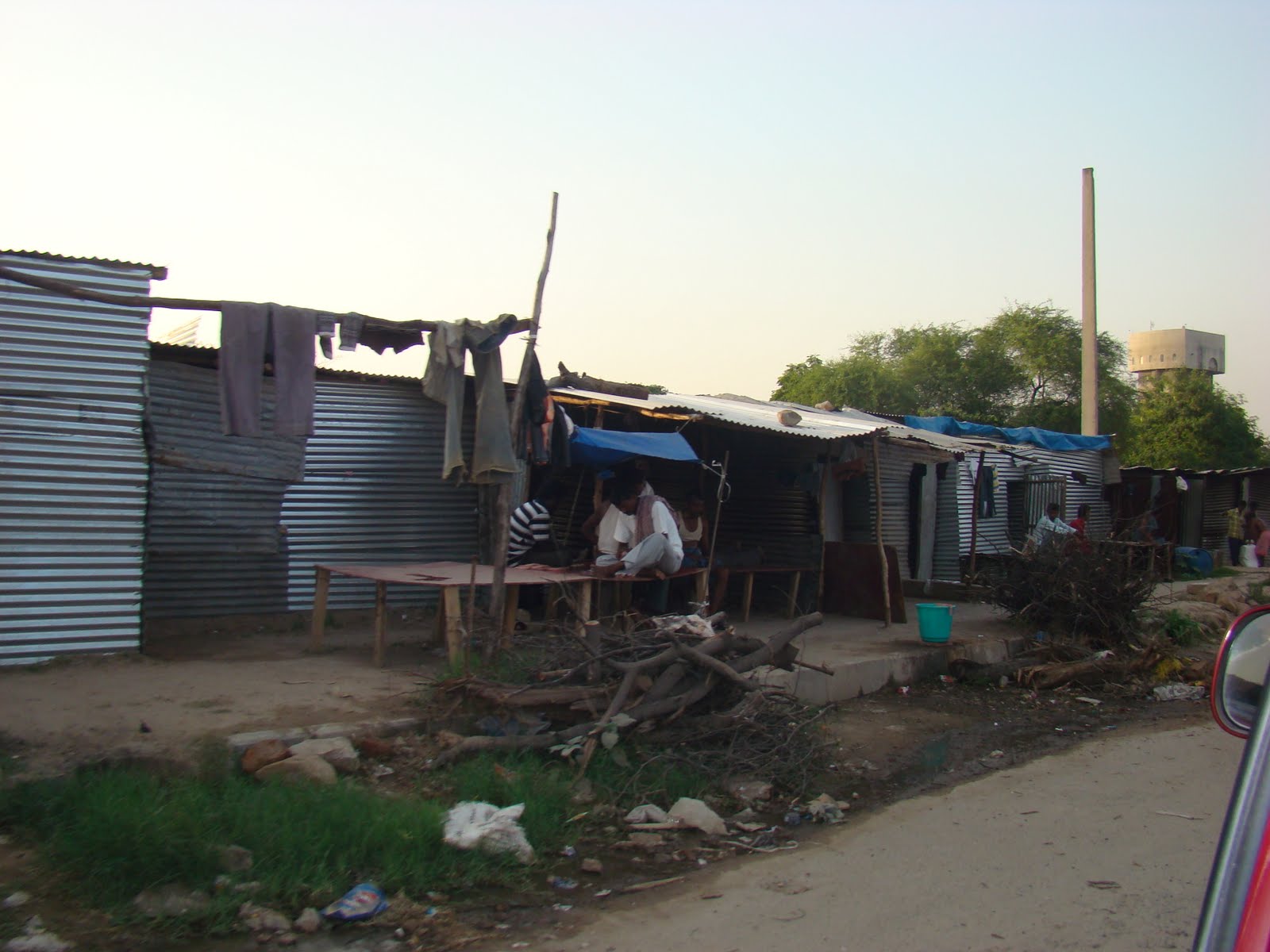 The other side of life for most of the population here is the one which is not behind manicured gardens and high walls but the scenes that unfold on the way to school or on the way into Delhi. Now with the construction of the Delhi metro there are migrant workers living in makeshift corrugated iron huts and every morning I drive past I see them brushing their teeth with their neem sticks and meticulously washing themselves in preparation for a day of toil and grime. Then in the evening, unwinding, the cooking of a meal over an open fire, a game of cards with friends, or just sleeping out on their charpoys because they are physically exhausted. I can think of the intensity of the sun and the noise of the monsoon rain hitting the corrugated roofs, but I do not live it, I can glimpse at their meager possessions hanging from a nail on the iron wall and cannot imagine it, I can construct conversations in my head of all the things I would want to ask them about their lives and never dare it and can wonder at their expectation of life and be amazed by it.