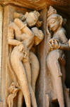 The sculptures and the extent of detail is truly magnificent and it is still a question in my mind which has remained largely unanswered as to why the Chandelas wanted to show so much of the sexual side of life and how intricate, complicated and unconventional it was. Or was it ? Perhaps that was convention for them and perhaps with the passing of the ages, sexual mores, practices and religion have made us view these temples with our latter day eyes.These latter day eyes certainly saw these women who unbelievably were dusting the sculptures like any good housewives would be doing. It made me laugh.