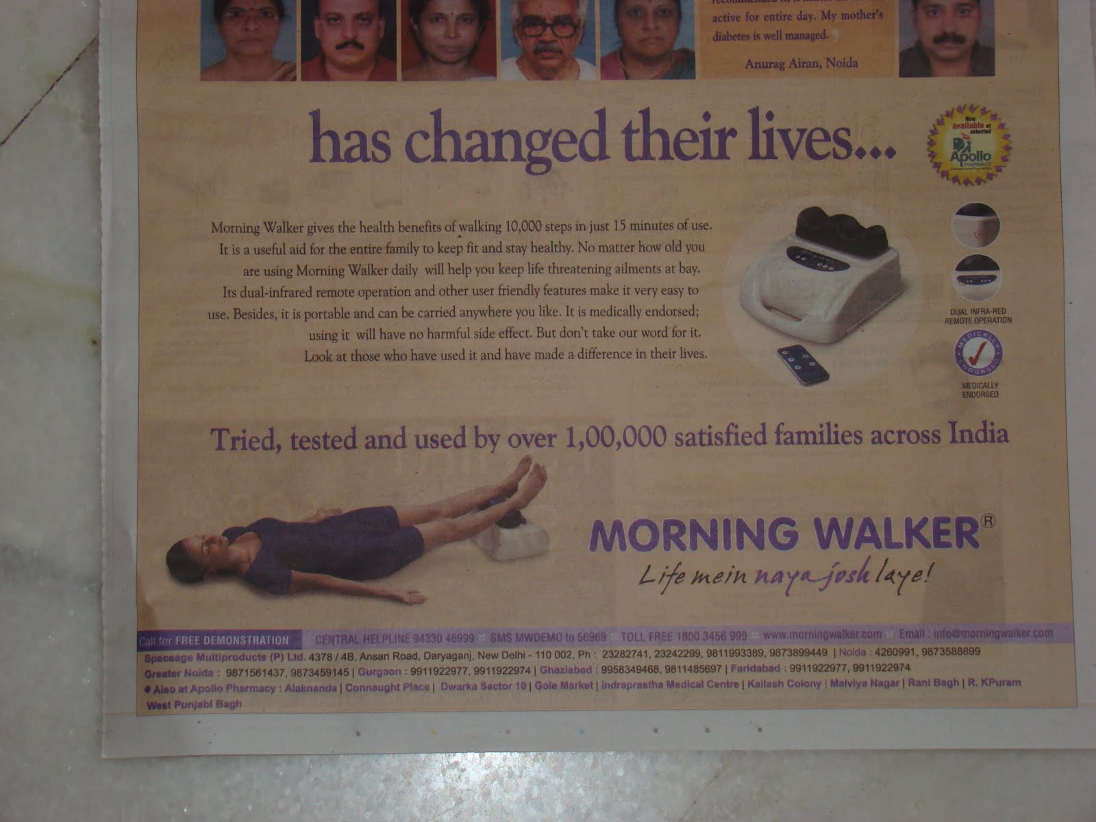 An advertisement in the paper had the testimony of 15 people whose lives have been changed by their 15 minute walk. Oh I thought a group I can relate to and hungrily read on only to discover that this was a machine where you lay down put your feet on it and it walked you 10,000 steps in 15 minutes.