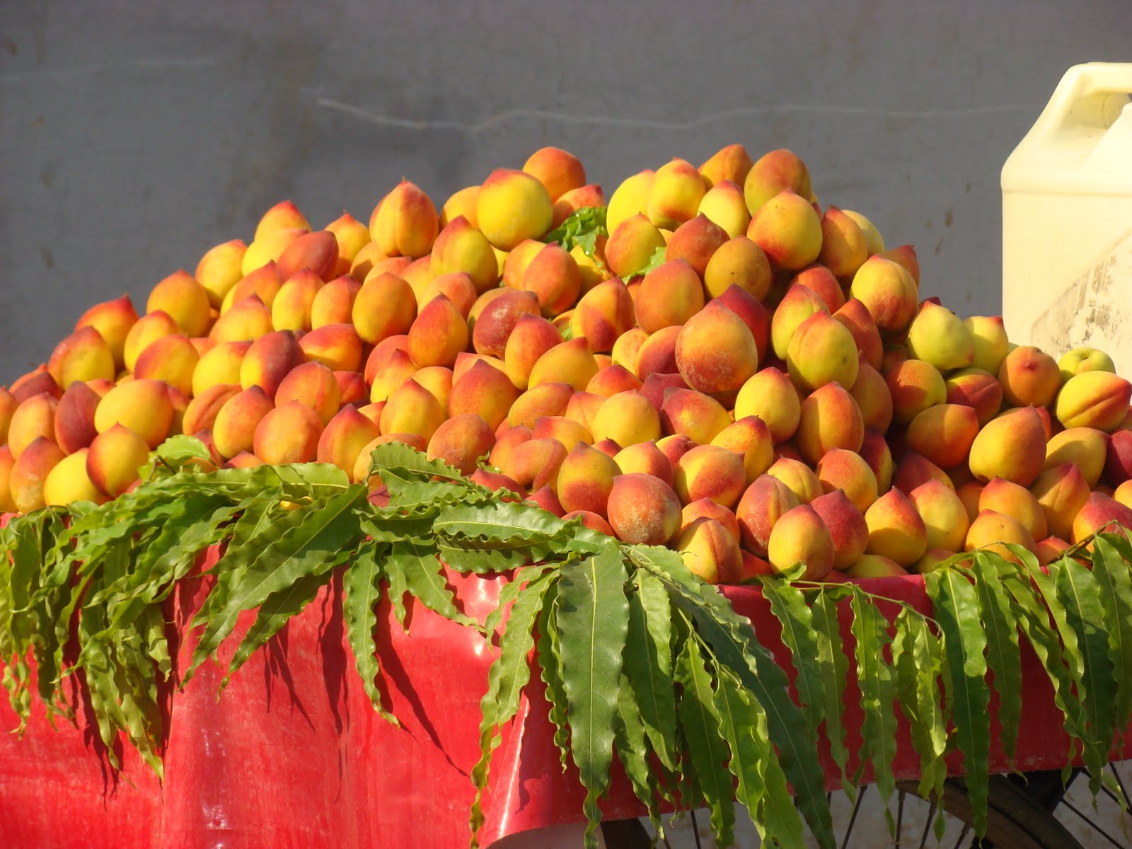 There are definitely some rewards to being here in this hot hot season and one of them is all the lovely fruit on the market, from the mangoes to the pineapples, the apples and the pears, the lychees and the grapes and now the cherries and the peaches. Check them out and gobble them up
