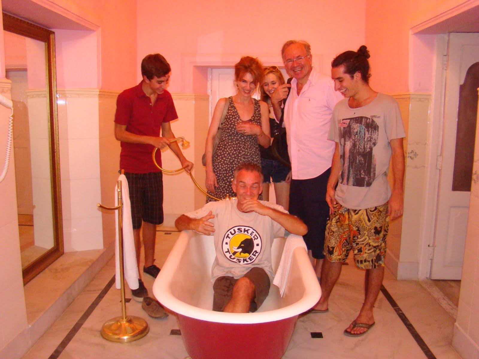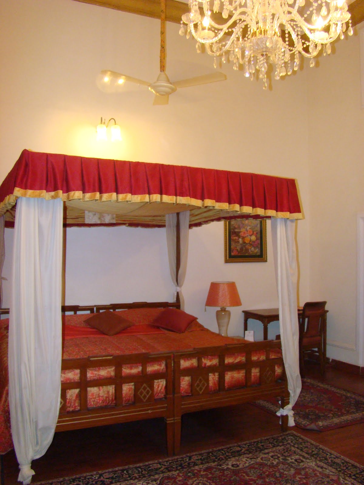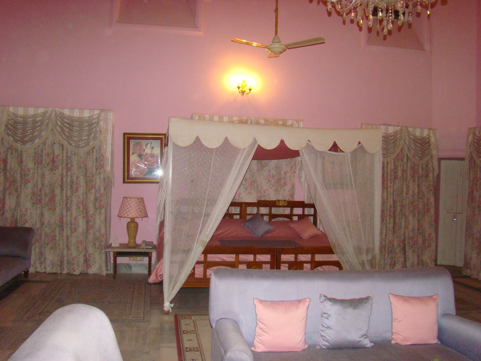The comfortable living room area complete with stuffed tigers staring down at you, a wonderful marble staircase with a massive chandelier that the boys cheekily started swinging. The stair case up decorated with pictures of the olden days and sadly many dead tigers at the feet of the Maharajas and guests. The Palace was built in 1894 by the Maharaja of Alwar as a hunting lodge. Now of course it is a heritage hotel sporting over one hundred rooms and no tiger hunts but tiger viewings. There is an air of dilapitated grandeur about the whole place which makes it quite special. The suites are massive done in pinks and bright reds and best of all are the free standing bath tubs in the centre of the bathrooms. Sariska Palace is a great place from where you can explore the Sariska National Park and Tiger Reserve and it is only 36kms from Alwar and 130 Kms from Jaipur.