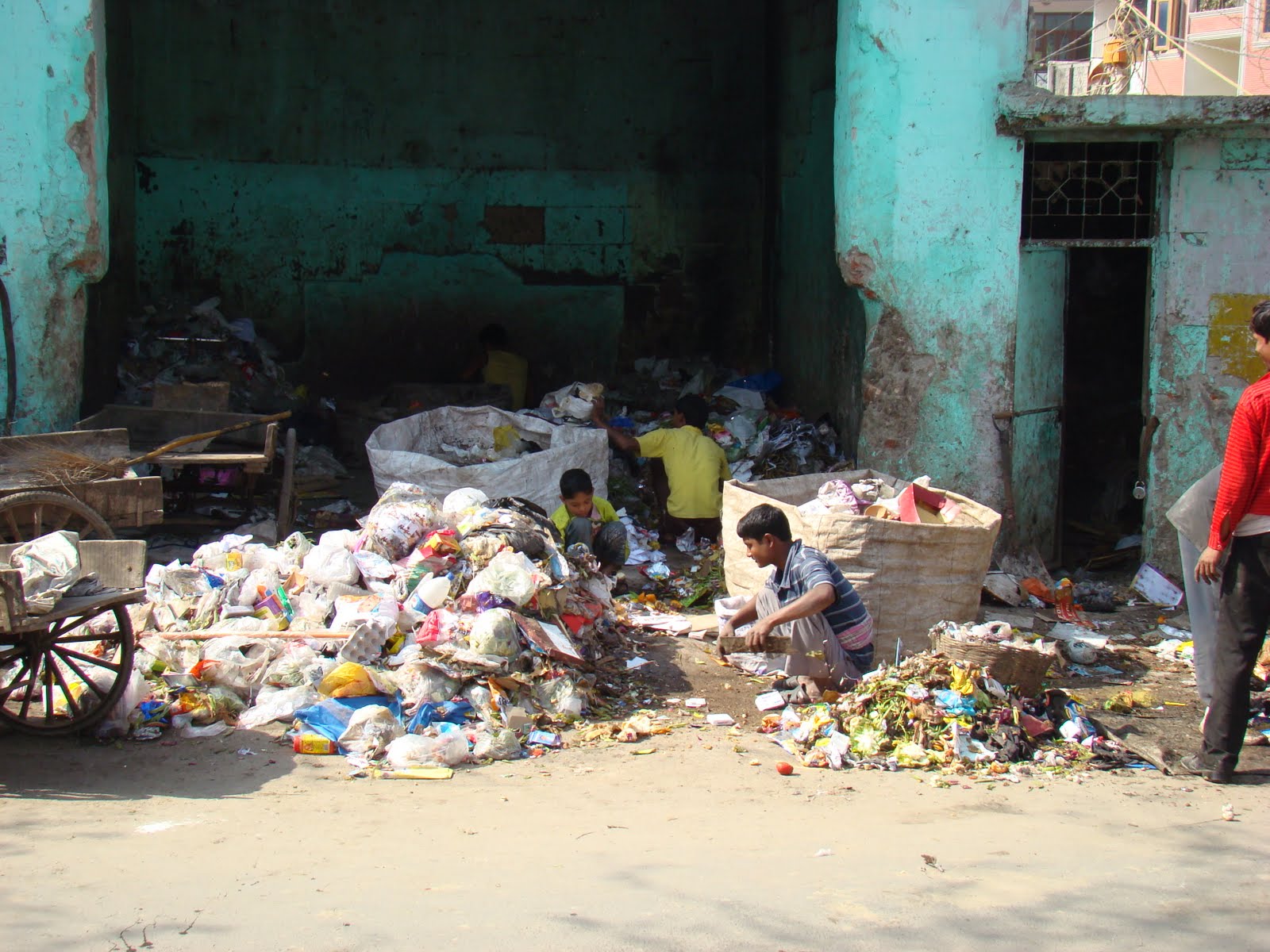Today is the 1st of September and I am a very happy woman. We have been here for over a year and one thing that has always upset me is that there is no “organised ” rubbish collection here, well not as we know it. There are rag pickers, and others who recycle bottles and paper so there is a lot that does get recycled.Here are some boys sorting through the rubbish.