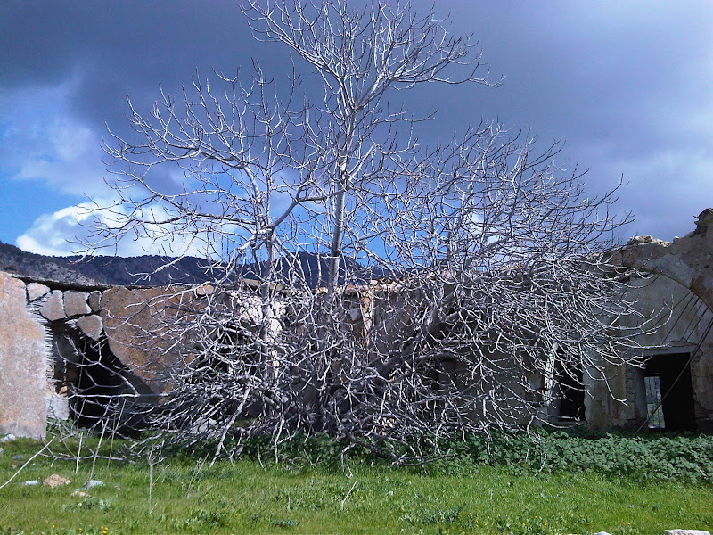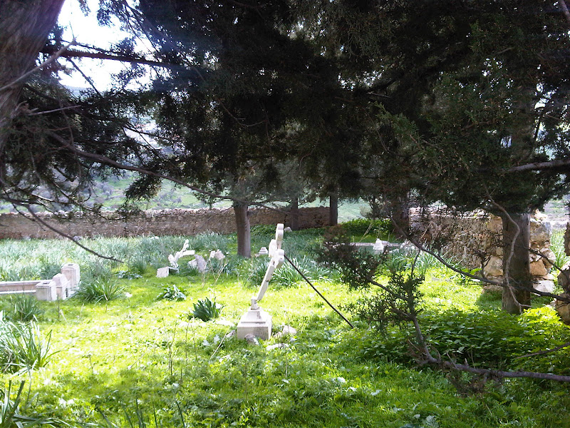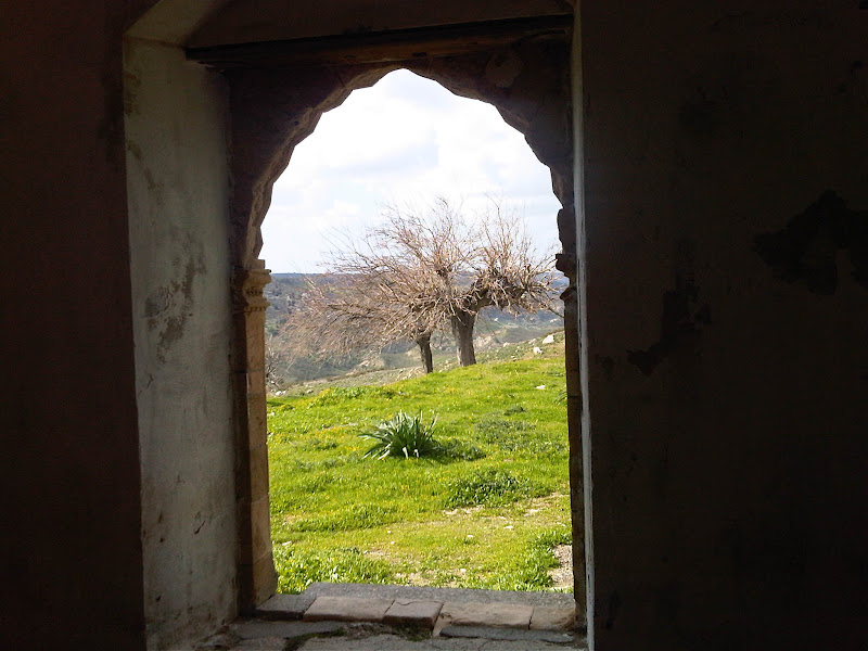 These are the emotions that I dealt with as we crossed the border and headed into the Kyrenia hills. The plains were a luscious green, it has been unusually wet in Cyprus this year and all the rivers and dams are full, and the mountains were slipping in and out of shadows formed by menacing clouds overhead. There was a brightness though in the sunlight that shone on us and warmed us in the cold wind, a clarity in the sky and a welcome return to our childhood when we would be out on these moutains for picnics and walks. I cant pretend that when visiting the desecrated monasteries and the stripped churches I was comfortable with what was before me and the scene that shook me most was a cemetery, largely abandoned and destroyed, with a cross which was propped up with a stick. Someone had bothered.
