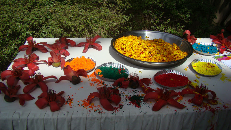 So it is quite miraculous I find that at this time nature is at its best. The Indian silk cotton trees are all flowering in hues of coral, the amalthas are vibrantly yellow and the flowers in the garden have this in your face if transient quality to them. Holi, the festival of colours is celebrated today the 8th but already from a few days ago I saw school children with paint all over them.