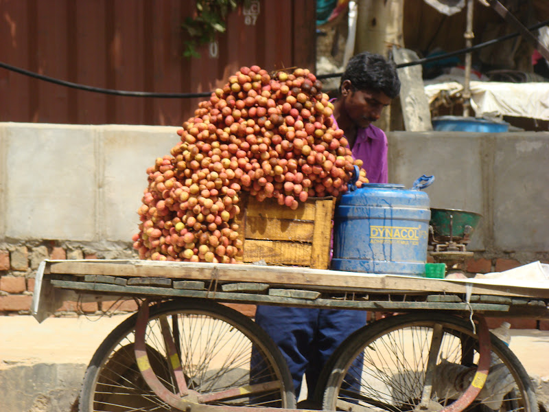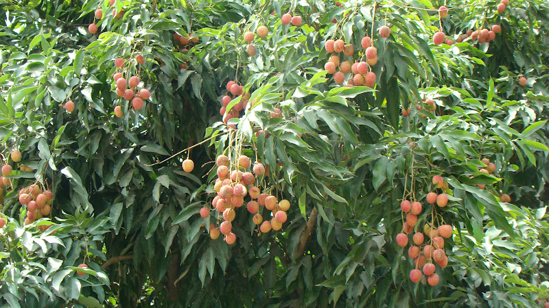 As I grew I was able to go to the shops and recognise a tin of Lychees but that is where the adventure ended. Until, that is, I came to India. I blogged about the appearance of fresh lychees on the streets and the roads are full of barrows selling them at the moment. But it wasn’t until I had been to Uttarkhand that I could finally complete the circle. Uttarkhand was rich and fertile, full of mango and lychee orchards and the green pendulous mangoes contrasted with the shamelessly blushing pink and plentiful bunches of lychees.