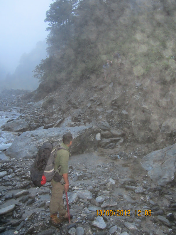 Today we were climbing to our highest peak, some 4,200 metres. The uphills were continuous, we crossed river beds, beds of screed, areas where the recent monsoon had caused massive landslides and we walked along the sides of unstable mountains with very little to hang onto. Along the way bear paw marks and fresh scat so they were definitely walking where we were walking ! We saw wild goat and watched lamerger eagles soaring above us.