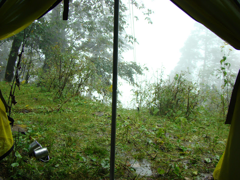 We crawled into our tents and lay down exhausted, too tired to eat or wash. It rained all night and this time it was Ravi who spent the night awake thinking the little pond that we were camping by would have flooded our tents. Gina and Jonathan were flooded and a lot of their clothes and possessions were wet and damp so we waited for the rain to subside and I just hoped to god that the way we came up would not be the way we came down.