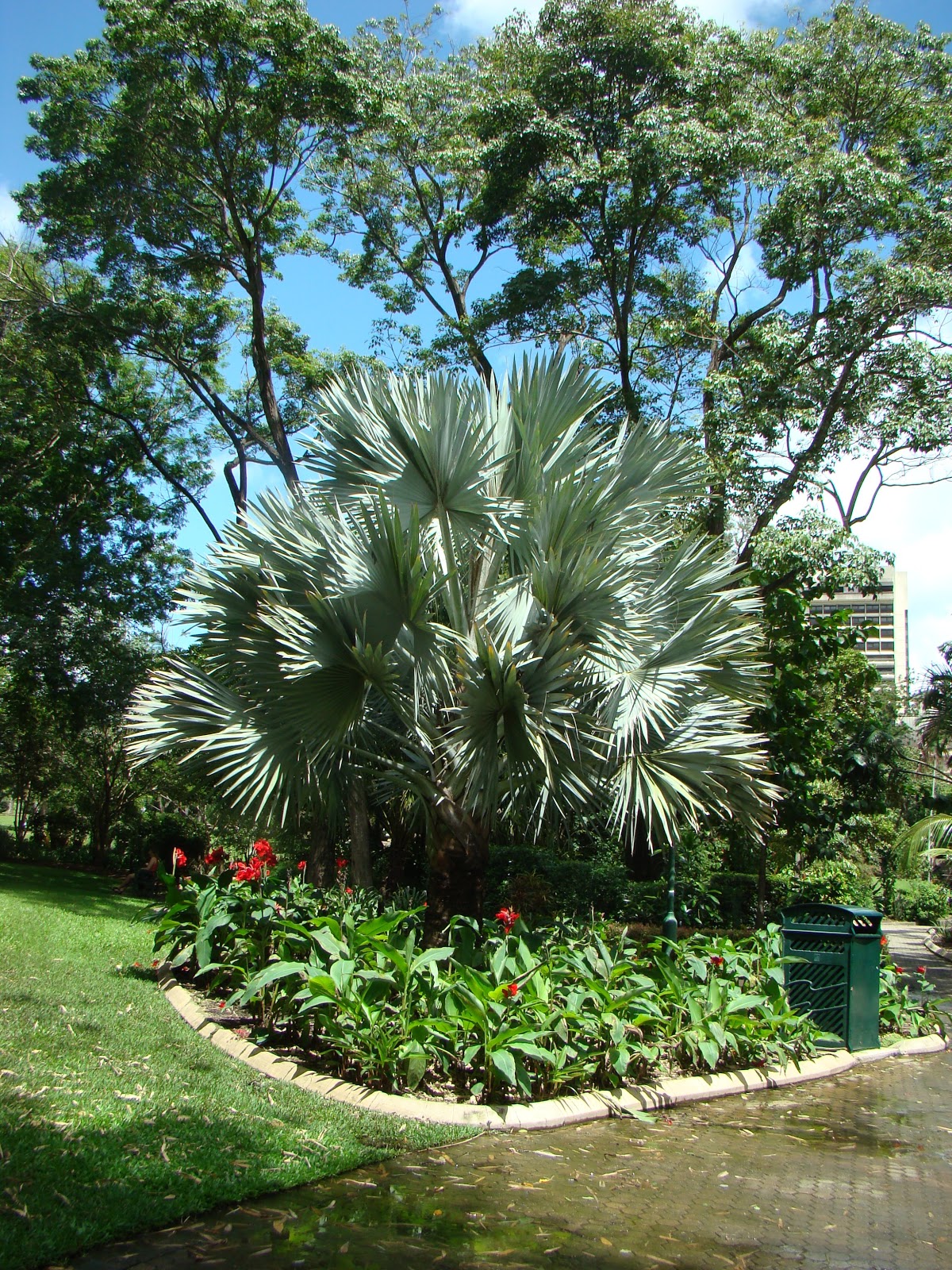 The varieties of palm tree were impressive, elegant royal palms in the distance, silvery palms called the Bismark palm which I hadn’t come across before, (no prizes for guessing who it was named after), fan tail and traveller palms and the fox tail palms.