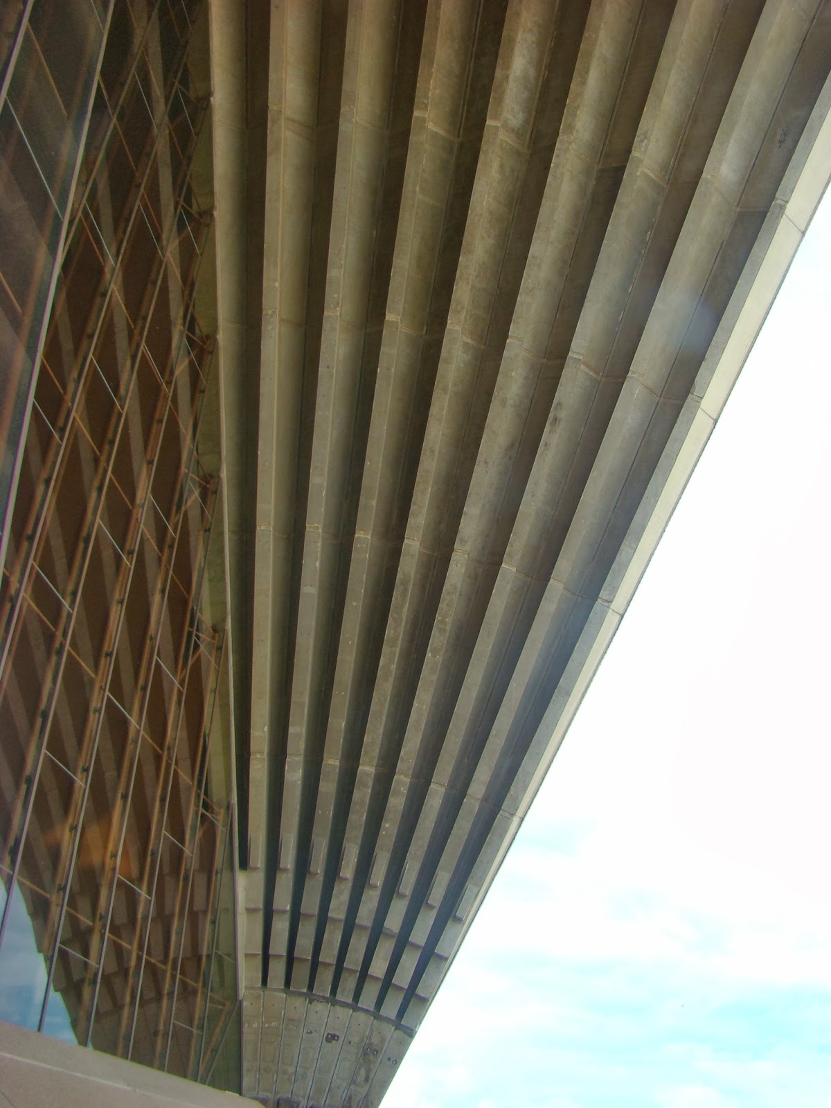 I am not sure any pictures do it enough justice but seeing it from every angle, inside and out certainly helped and gave me an immense appreciation of the engineering and architectural feat that it is. The various concert halls have acoustics which are carefully considered and calibrated.One concert hall is under the sea. The public places are a triumph of raw concrete and outrageously coloured carpets. The domes are constructed of special tiles, some beige and some white, all made in Denmark I believe, which are self washing and brilliant in the antipodean sunshine.
