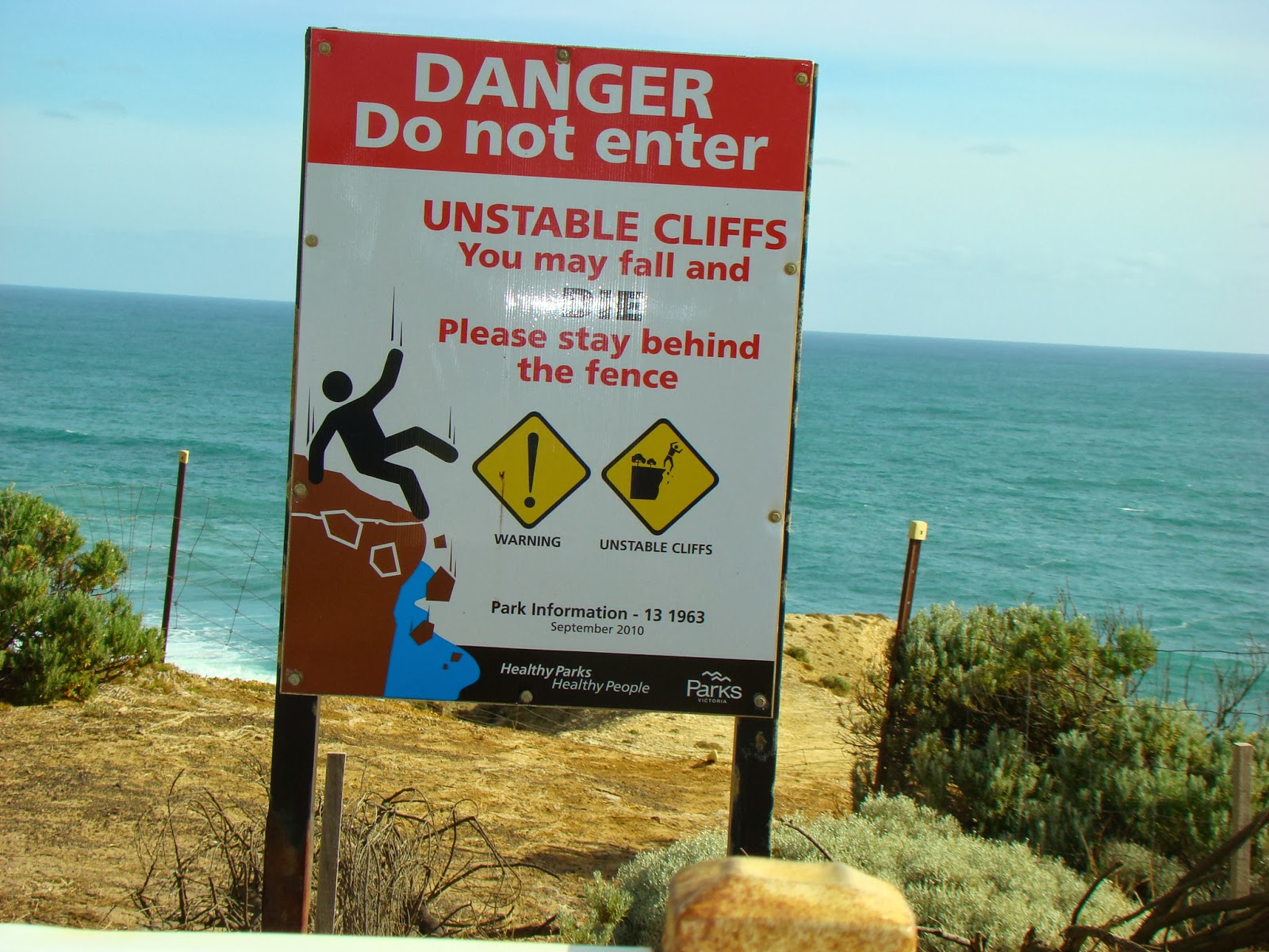 I love the Aussie signs which dont mince their words – you may fall and DIE it says !
