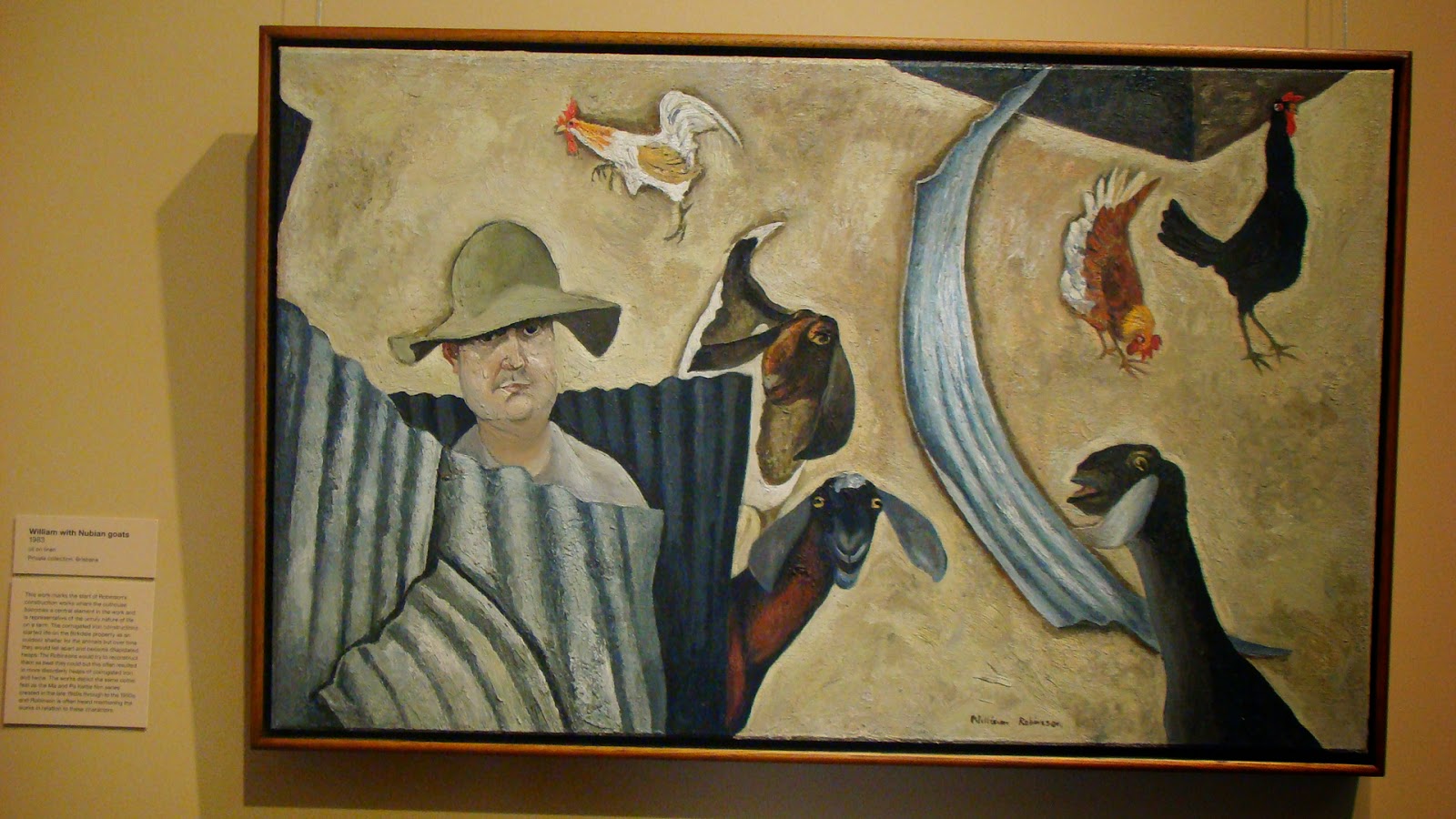 When I visited old Government house recently the William Robinson Gallery was hosting an exhibition of his farmyard animals. Displayed in all the various rooms upstairs they were wonderful reminders of the artist’s connection to life in the farmyard and of our own tenuous, at times, connection with them as more and more of the population become urbanised and exist often “off the ground”. Having lived in a number of places where the cows were so important it almost felt right that I came across their importance once more here in Australia. I smiled my way through this one.