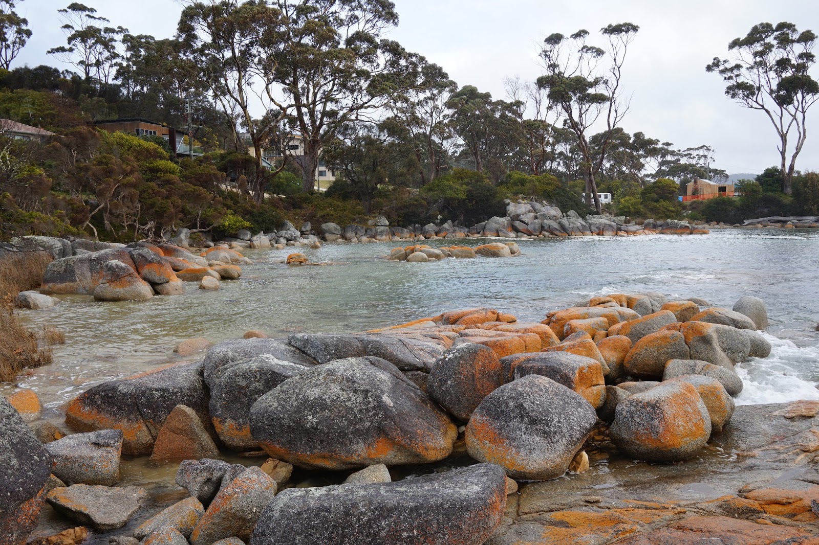 A bit further up the coast, the Bay of Fires, some 27 kms of beaches, called the Bay of Fires because of the Aboriginal fires first seen by the colonialists when they were approaching these coast lines all those years ago. The orange on the rocks is due to a lichen which grows on them which make them a little unusual.