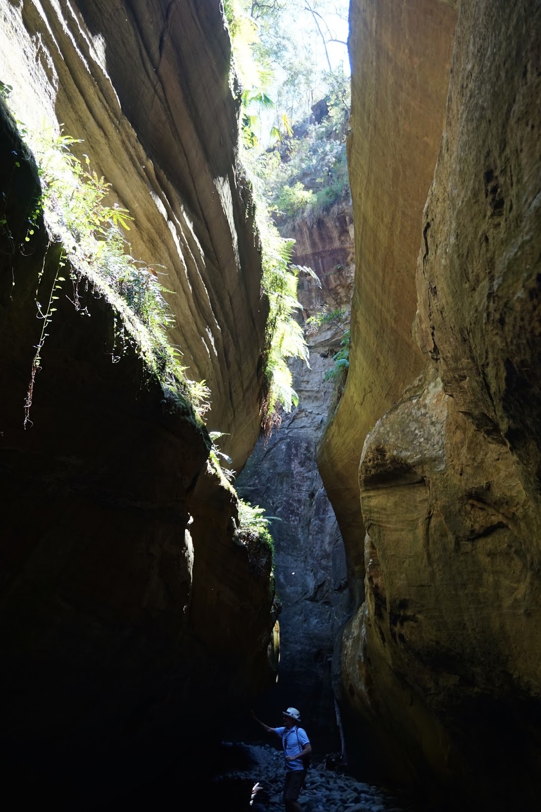 The coolness of Boowinda Gorge where the water has shaped the rocks the way it flowed and the light peeks in from above.