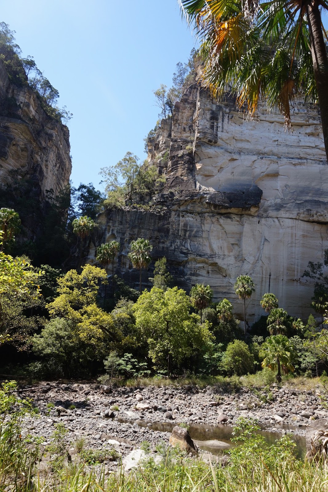 Think of a long corridor and rooms leading off from the centre and you will have a good idea what Carnarvon Gorge is like. Every room – every separate part was a revelation in itself with history, art work, fauna and flora and above all the weathering of years. I spoke about the original and extremely old stencil art of the Aboriginal tribes and so today I will tell you a little about the other “rooms” we went into and admired.