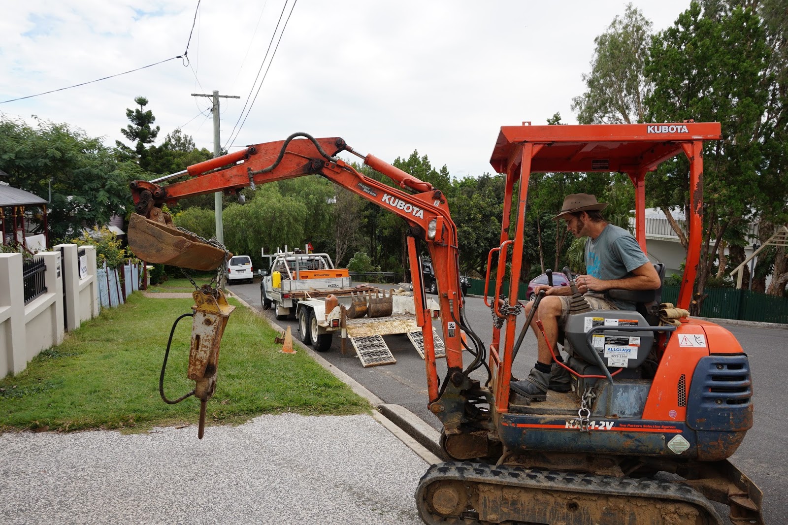 Two major jobs and two very different outfits. Renovating our pool, a long and rather tortured saga with one lone ranger who, though unsupported by his superiors, soldiered on through, saying how lovely our neighbourhood was and how we all looked out for one another. He has lovely sideburns and wears a singlet and shorts and always the standard Aussie workman’s boots, with protective covers over his ankles and his big hat. This man has single handedly ripped out our fibre glass frame, chopped it into manageable pieces and bob catted it up the neighbours drive and has been happy and pleasant throughout.