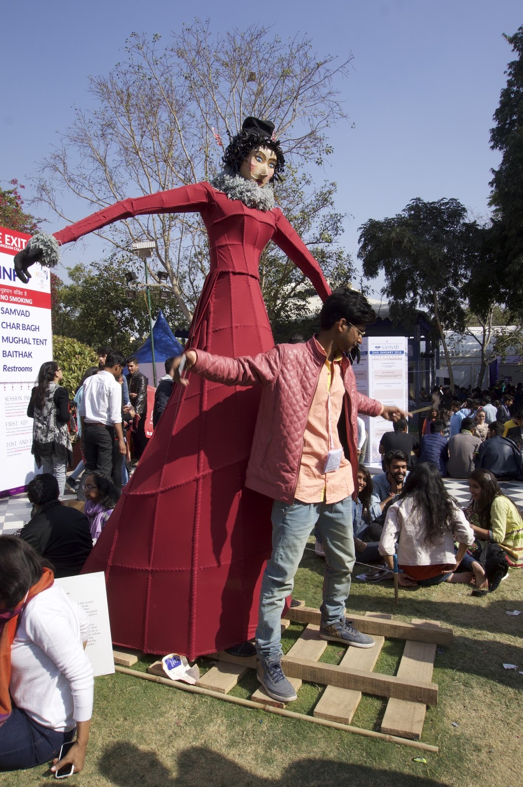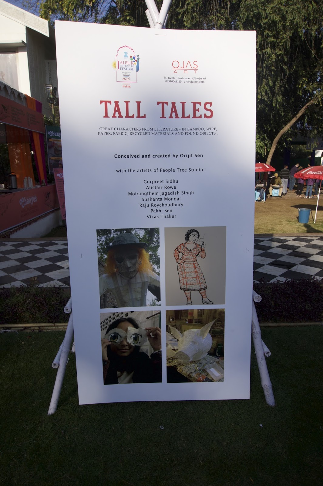 In the central courtyard of Diggi Palace is an interesting exhibition of art work by Orijit Sen who in his installations called Tall Tales features seven characters from world Literature.