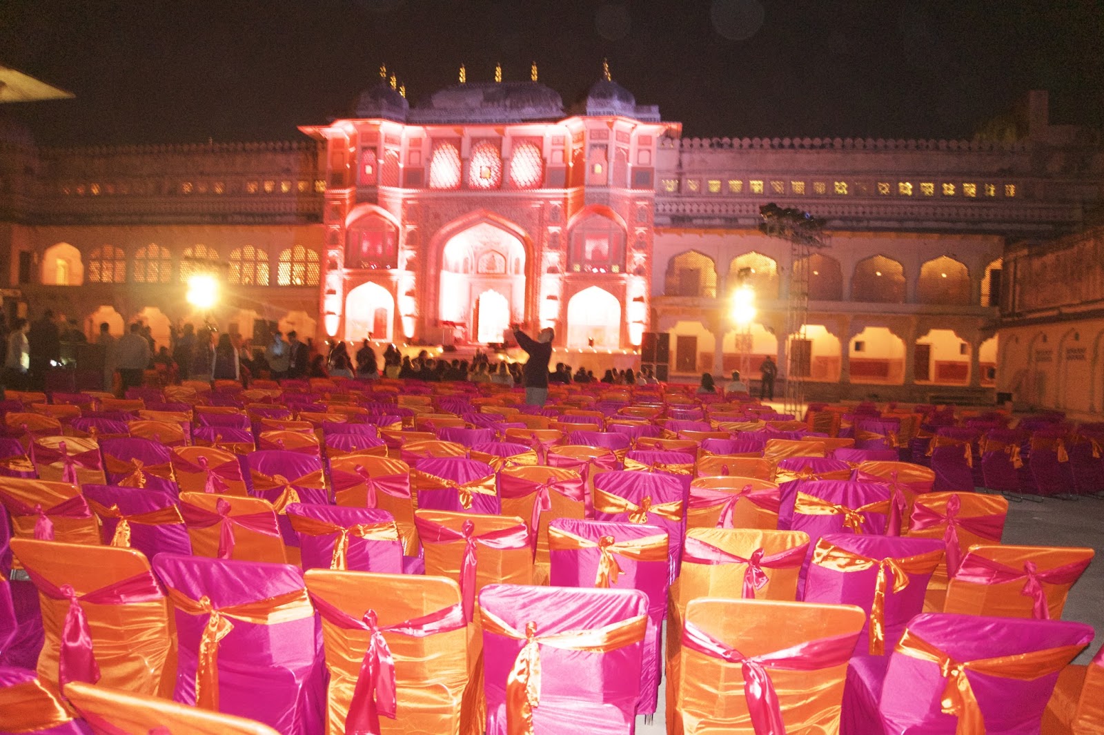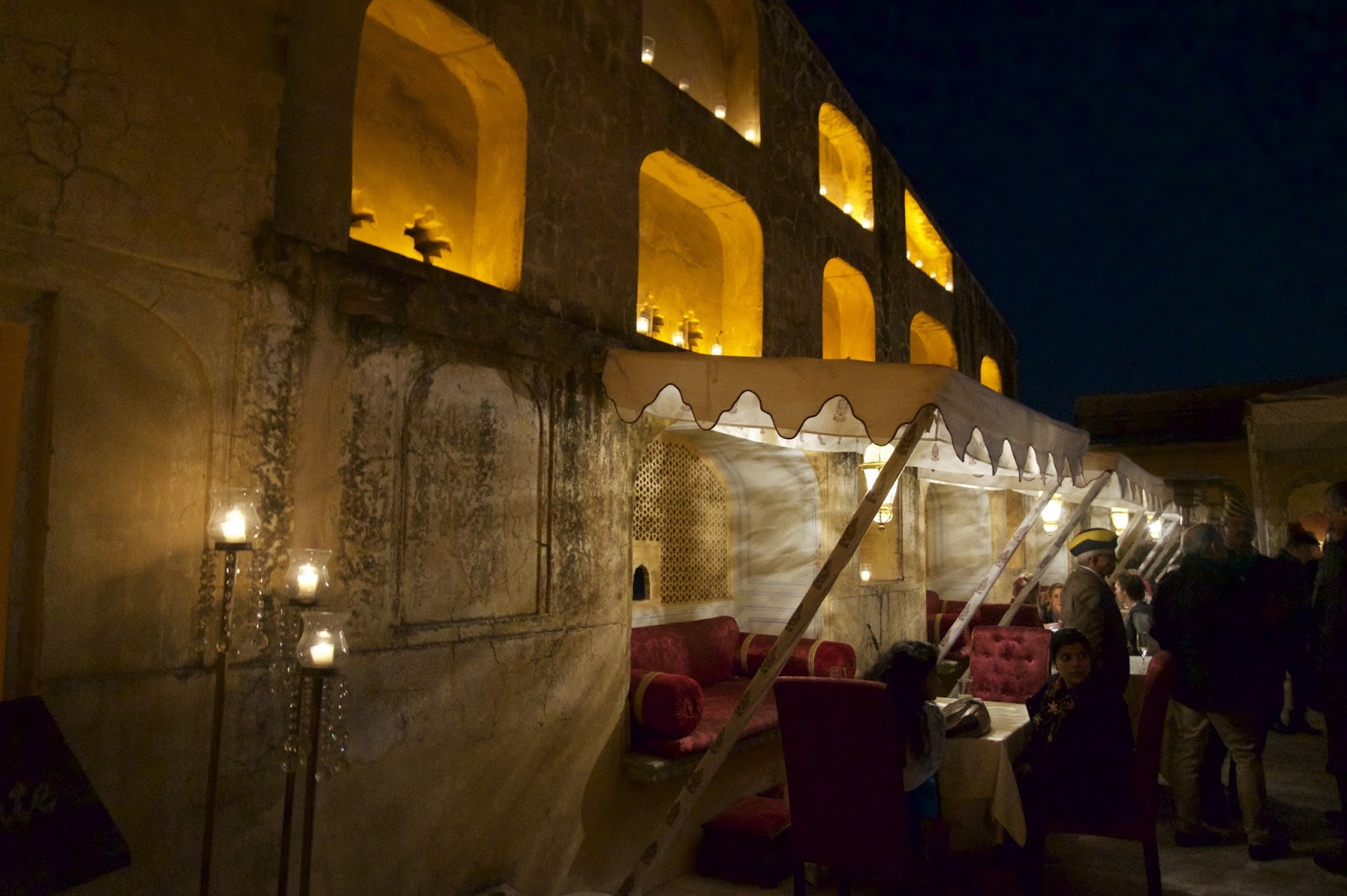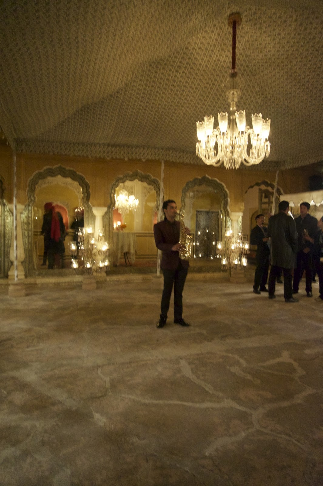 The launch was in a part of the palace decorated with large candles and lamps, a saxophonist playing in the background while tandoori chicken and champagne circulated in large quantiities.