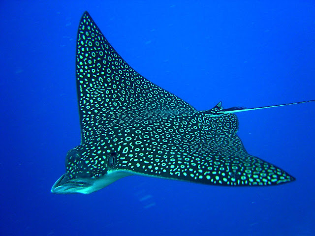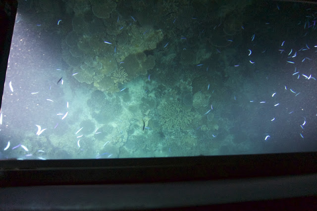 The fish were plentiful and playful. We swam with green and loggerhead turtles, whaler sharks, black tipped and white tipped sharks, leopard sharks, cuttle fish and ink fish, sweetlips and groupers, star fish and anemones.Perhaps my favourite were the spotted eagle rays which we saw swimming by in formation.The corals ranged from brown to bright green, purple and the most intense blue. There were yellow corals and aubergine coloured ones with fantastically bright reef fish darting in and out of them. I didn’t really want to get out of the water but the low and high tides dictated when we could swim and where, which was not a bad thing because we could then wander around the island and look at the plants and the birdlife – more of that in my next blog.