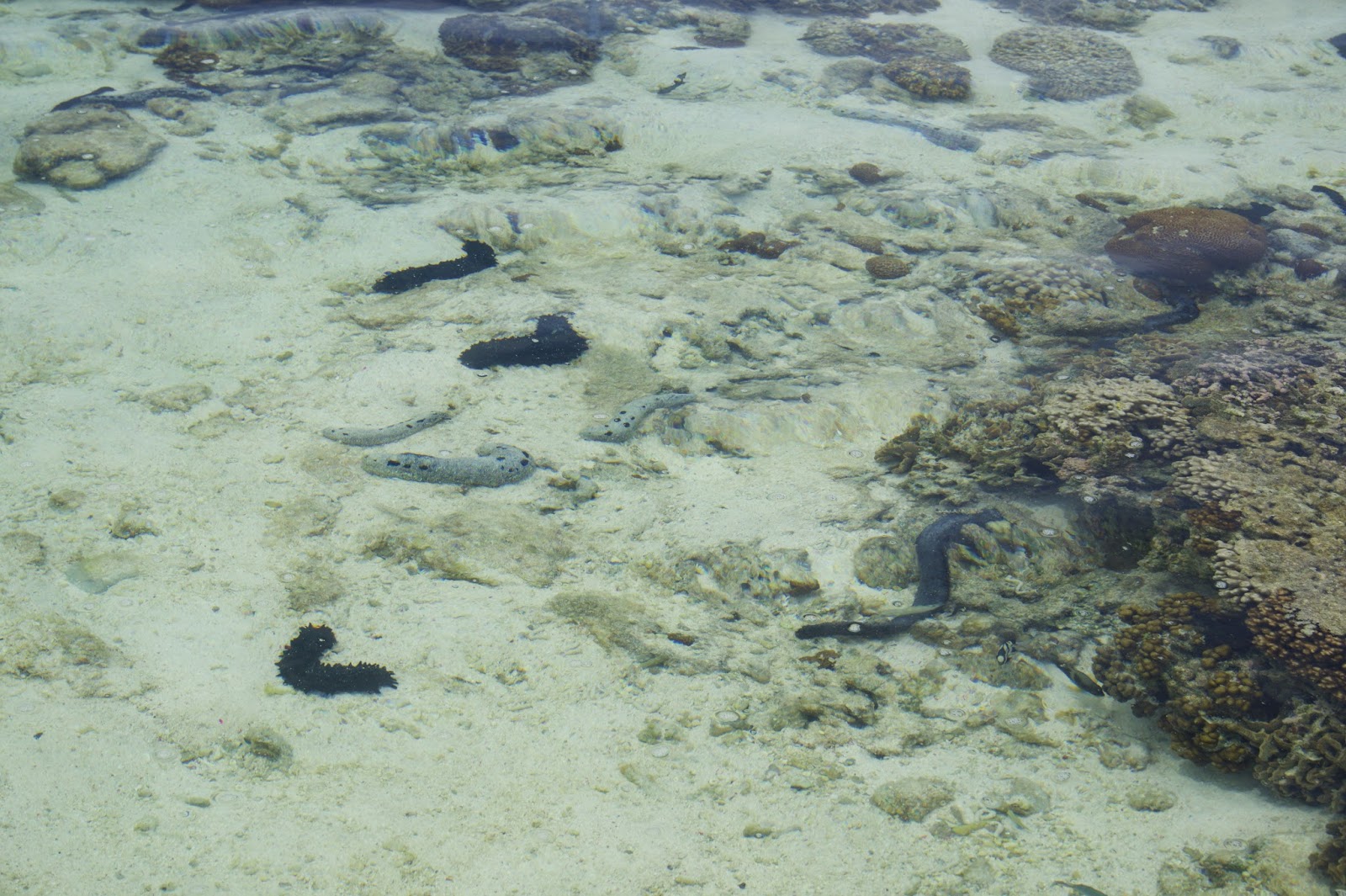 Many many sea cucumbers everywhere- the sign of a very healthy reef.