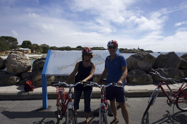 The island is about 18 kms off the coast and the ferry journey takes you down the Swan River and past Fremantle Port to the open sea. The Ferry ticket offers you the hire of bicycles for the day. Its the best way to get around the island.We came into the Island Jetty and headed off towards the furthermost point of the island – the West End – where we were hoping to see New Zealand Fur Seals. Along the way we stopped at coves and beaches, explored the bush land and raced each other. I came in second each time, on gentle undulating roads filled with bikers of all ages.