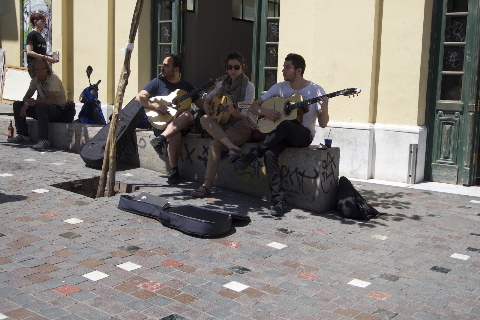 Nothing however seems to dent that Greek spirit of – lets enjoy the moment. Here are some bouzouki players who were outside the metro station strumming away.