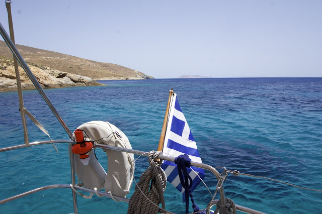 Dinner was souvlaki and giros in pitta with our toes in the sand washed down with a cold red local wine and a couple of baklavas on or way back to the yacht.