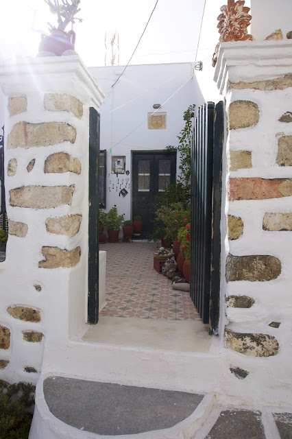Rounding the bend we came into port and docked. The harbour was large full of little restaurants along the beach and plenty of supermarkets and bakeries. We decided that we were going to walk up to the Chora, the main town and visit the Kastro at the top. This involved some wide steps to start with until we got up to the houses and then the steps got narrower and narrower, going through little passages where you had to walk single file.