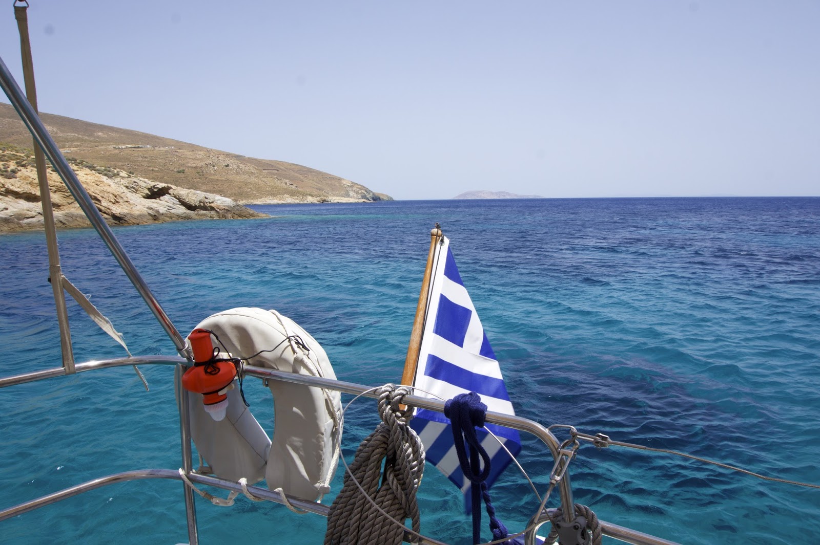 Dinner was souvlaki and giros in pitta with our toes in the sand washed down with a cold red local wine and a couple of baklavas on or way back to the yacht.