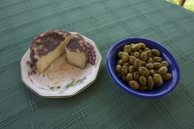 We wandered around and came back with the local goat cheese which was the best thing we had tasted in a long time. Total price for a whole cheese Euros 8. Lunch was this and a fresh tomato and chilli salad.