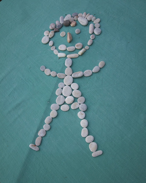The bay we chose for a swim today was a favourite for a number of reasons – we found the most amazing pebbles, rounded like buttons and smooth like silk and we spent time choosing them and slipping some into or swimsuits to take back with us. The result is Aegean woman who I can proudly share with you all- there are enough men on this trip, not to necessitate another God but a Goddess. The bay was called Gialoudhia Bay- little Glass bay.I just want you all to note the fabulously Greek nose. Names warmly accepted for her baptism.