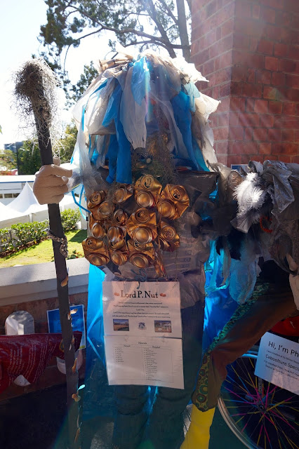 Another very good example with empty Nespresso capsules forming her belt and tomato ketchup bottles forming her arms.