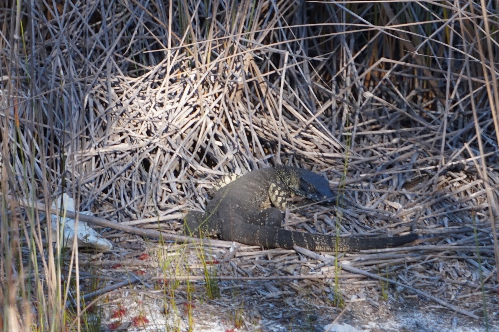 Brown Lake and a resident monitor lizard that was sunning itself among the reeds.