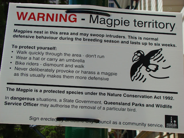 Today I was out on my bike -this time with another son, George, and we had a Brissie baptism. We both got attacked multiple times by a magpie who clearly did not like seeing us on her part of the bike path.
