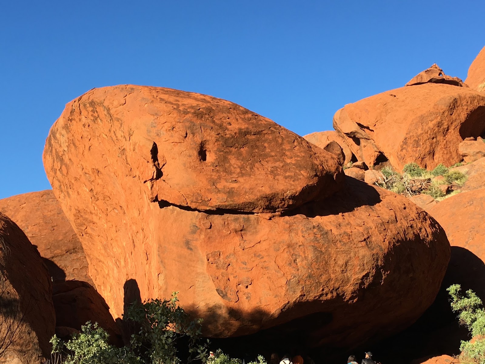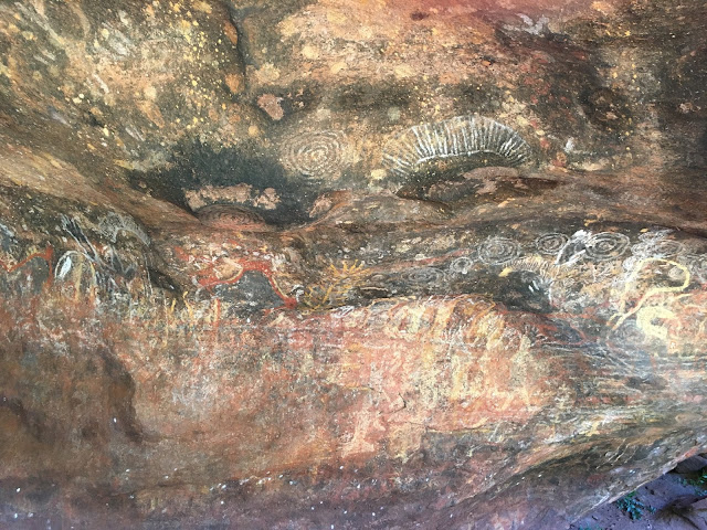The bottom of the rock is where you need to be to appreciate that there is so much more to this sacred site. Go into the Kantju Gorge and hear the stories of creation and see the water snake who is neatly but very clearly defined nearby. Have a look at some of the rock carvings and enjoy the flowers, vegetation and tranquility of a base walk which will take you the 10.5 kms around the circumference.