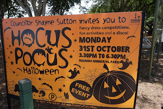 There is a bright orange notice inviting the children to the Park for Halloween which reminds me to put out my pumpkin lantern for my own neighbourhood children on Monday night.