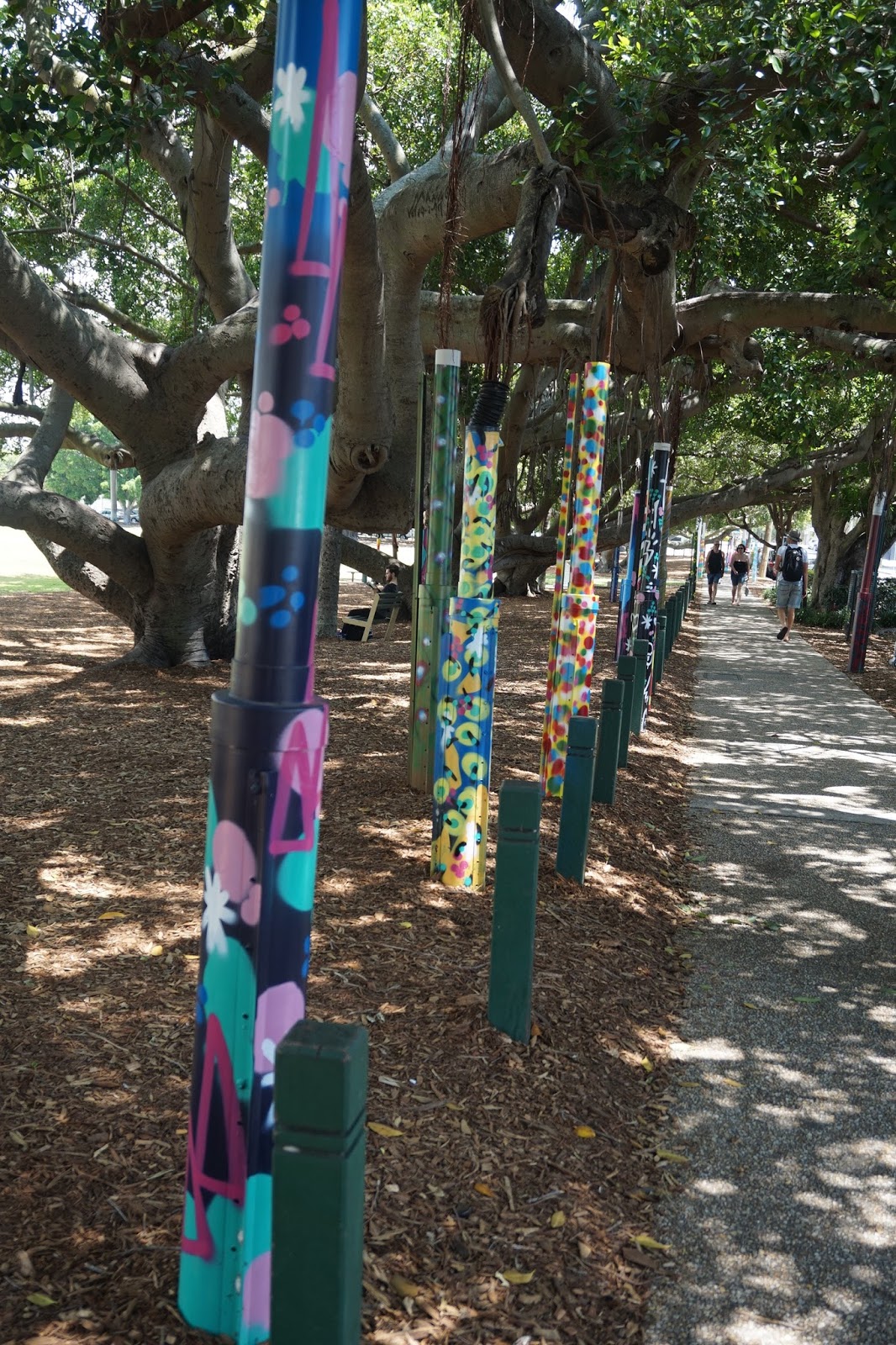 In Bulimba’s Memorial Park there are weeping figs and small leafed figs which are a living tribute to the servicemen and women who sacrificed their lives in the First World War. The aerial roots have been encased in cylinders which are individually painted and make for interesting art work in the park.