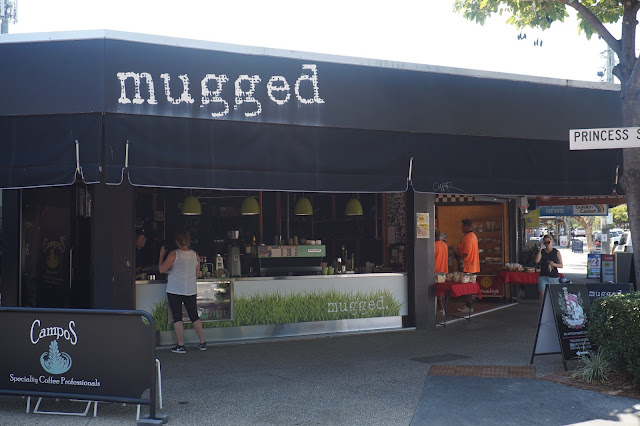 Today the skies were that deep blue and clear. I headed off to Bulimba on the ferry looking at the flowering jacarandas on both sides of the river. Bulimba’s little jetty is complete with a little tower and its High street – another Oxford St – is full of lovely shops and eateries and this must be the best named cafe in the whole of Brisbane.