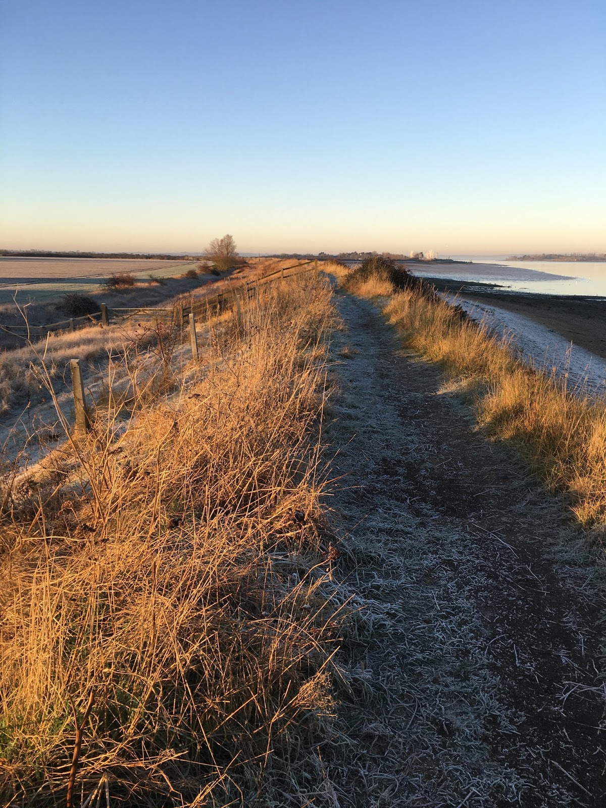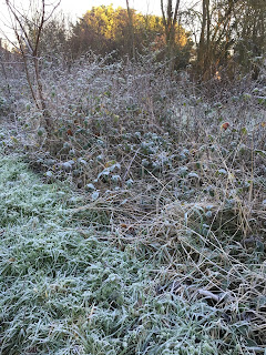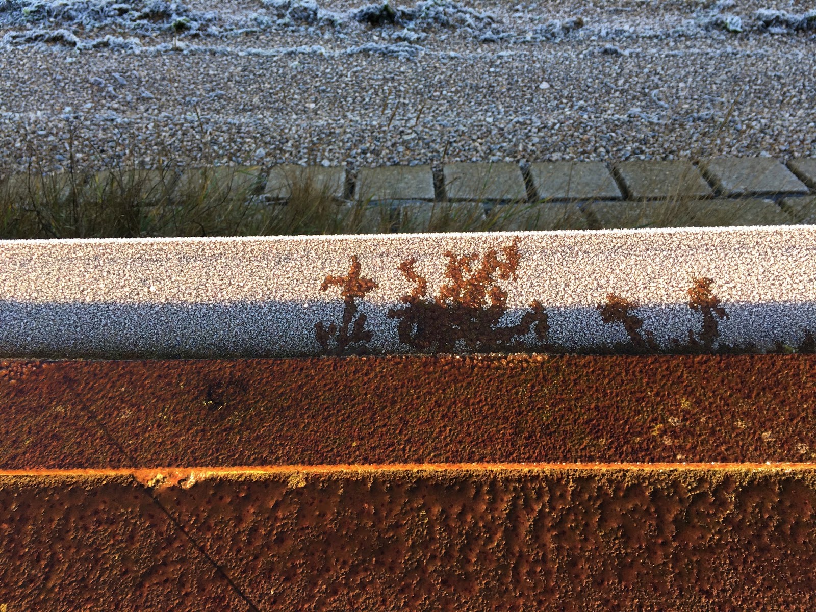 Happy New Year Everyone – we left the Uk which despite its state of limbo – ness was remarkably welcoming and peculiarly unseasonal. There were however what I would call some cold snaps, when the frost lies on the ground, the ice forms on the ponds and the grass is spiky and crackly. There is a beauty in this cloak of cold talcum powder and we were able to enjoy a few walks in the early morning, before the sun had a chance to work its magic forming strange tree like structures on the sea front wall as the frost turned to water.
