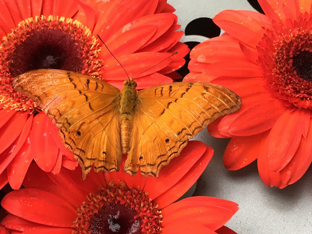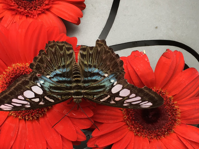 Did you know the airport has a Butterfly Garden in Terminal 3? I pushed the heavy door open and was momentarily thinking this was Kew in the Hot House or Brisbane last week. The air was heavy and the moisture palpable but the plants love it and it shows. The pitcher plants were full, the leaves glossy and the flowers bursting with colour. The blossoms were just the kind of triggers that the butterflies are looking for, inviting and sweet with nectar, and ready for indulging in a good feed or some old fashioned hanky panky.