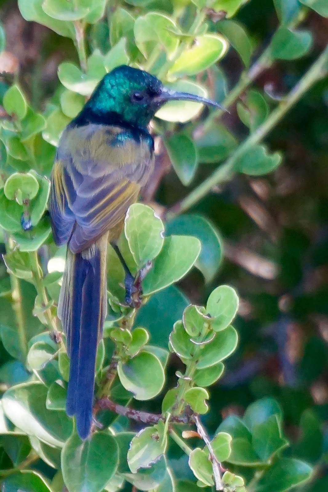 Our time in South Africa was made the more spectacular not only by the wild and rugged coastlines but also by the birds and flowers we saw – we simply came across them driving or walking and it is partly because the Cape Floral Kingdom is so special and is home to so many diverse plants which attract spectacular birds of all sizes. From the diminutive but irridescent honey eater here.