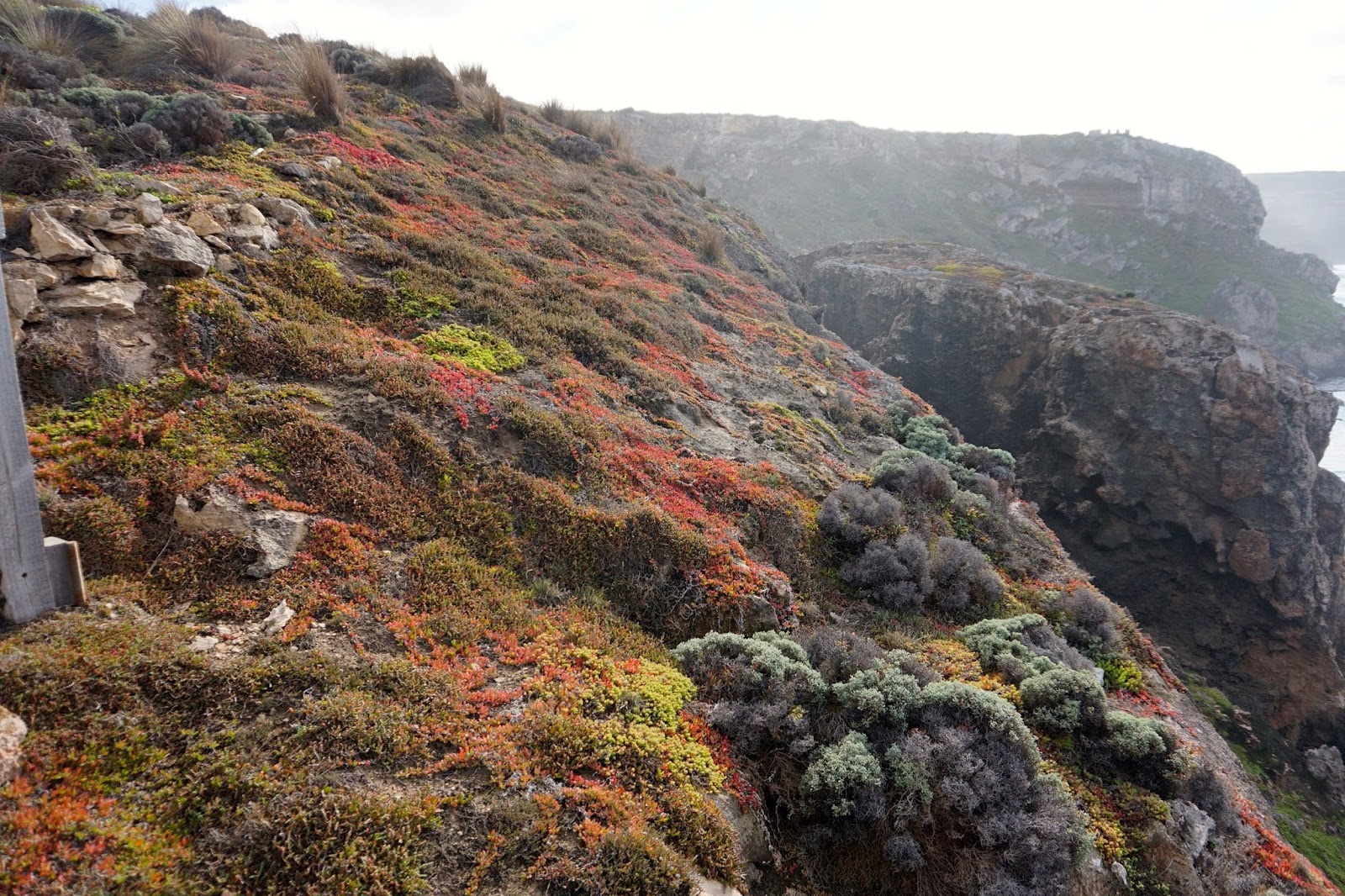 We arrived in the twilight. A brushstroke of pink and orange across the sky. Our destination Southern Ocean Lodge. This is a short journey from the capital of the island Kingscote, across to the southern side, but at this time of night, it took a little longer. Kangaroos and Tammar Wallabies are crepuscular (a favourite word of my son George) meaning they like the twilight and tend to come out to feed at dawn and dusk, so we crept along, playing dodgems with the animals along the way. The lodge is settled in the short shrub land overlooking Hanson Bay (see the low lying buildings on the cliff face) and all I can say is that the colours and the panorama are most definitely breathtaking. You could easily spend your entire day gazing out at this wonderful vista.
