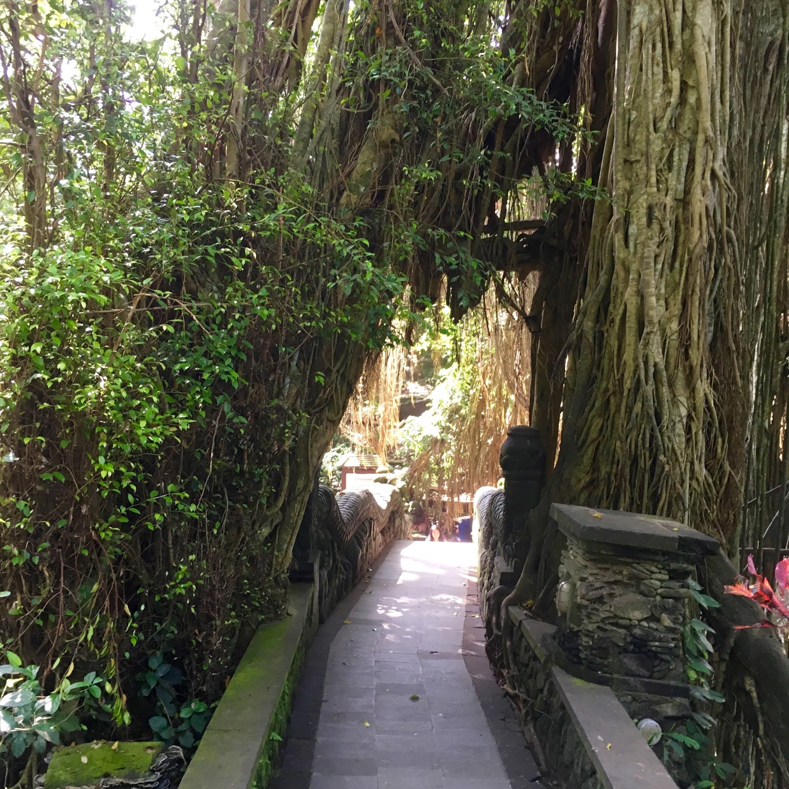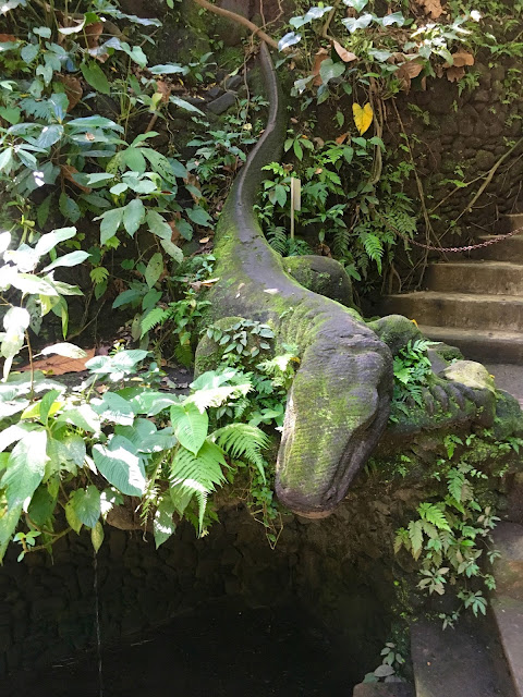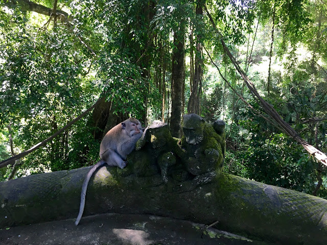 There are three fairly ancient temples in the Monkey Forest and people worship as well as stroll along and enjoy the rain forest. It is full of ancient carvings which are often mossy and green, but blend so well in the environment.