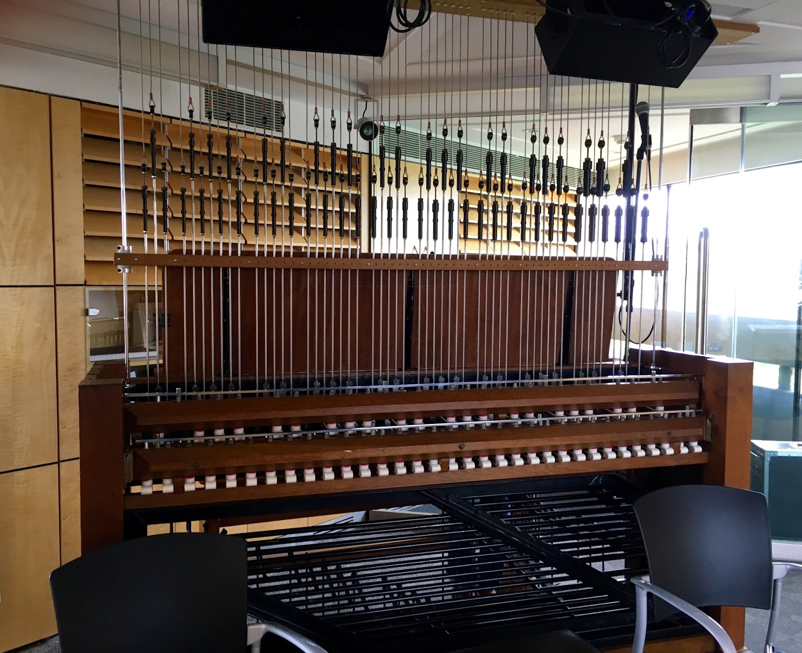 There is no access to the Tower but we were standing below and we met a very nice Camberan, who was the husband of the woman who was playing the bells at that very moment. He was waiting to collect her. Her name is Lyn Fuller and she is a corillonist if that is the right word. She came down and met us, as well as a young boy who loved hearing the sound of the bells. She very kindly gave us a special tour – we went up in the lift and saw where the bells are played on a keyboard. Individual cables are linked to the bells which are then rung by iron clappers as the carillonist strikes each baton or pedal.