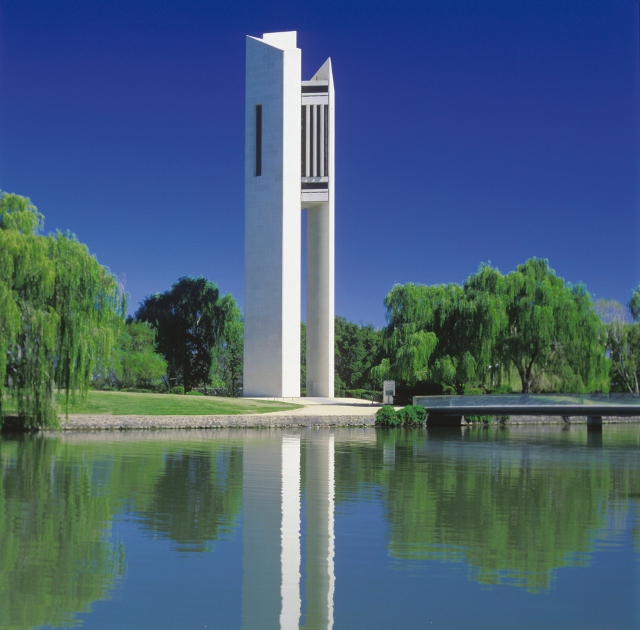 This building everyone is the National Carillon. I challenge all of you out there to drop me a line or send me a message if you know what this is. Aussies who live in Canberra excepted. Certainly I had never come across it and so we set off to explore this tall structure which lies on a small island called Aspen on the edge of Lake Burley Griffin. It is connected to the island by a little walk way. It was a gift to the people of Australia from the British Government to celebrate the 50th anniversary of the Capital and it is a strange but wonderful gift and I am still wondering who conceived the idea and why.