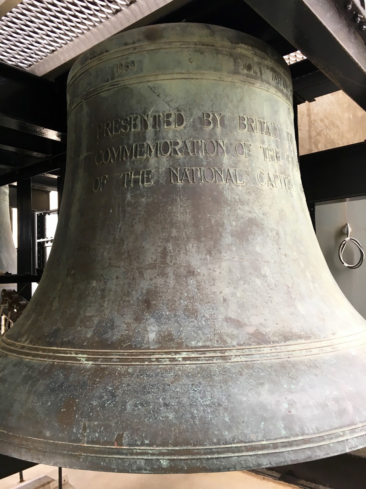 Carillons have a minimum of 23 bells. This one with 55 bronze bells is quite large. The bells each weigh between seven kilograms and six tonnes and we went up a floor to see one of the bigger ones. A separare mechanism operates the quarter hour of the striking of the Westminster chimes. With the tower rising some 50 meters, the sound of the bells drifts across the lake and through the parks. It is soothing and beautiful and seems to me to be an inspired gift but by whom and why I still do not know.