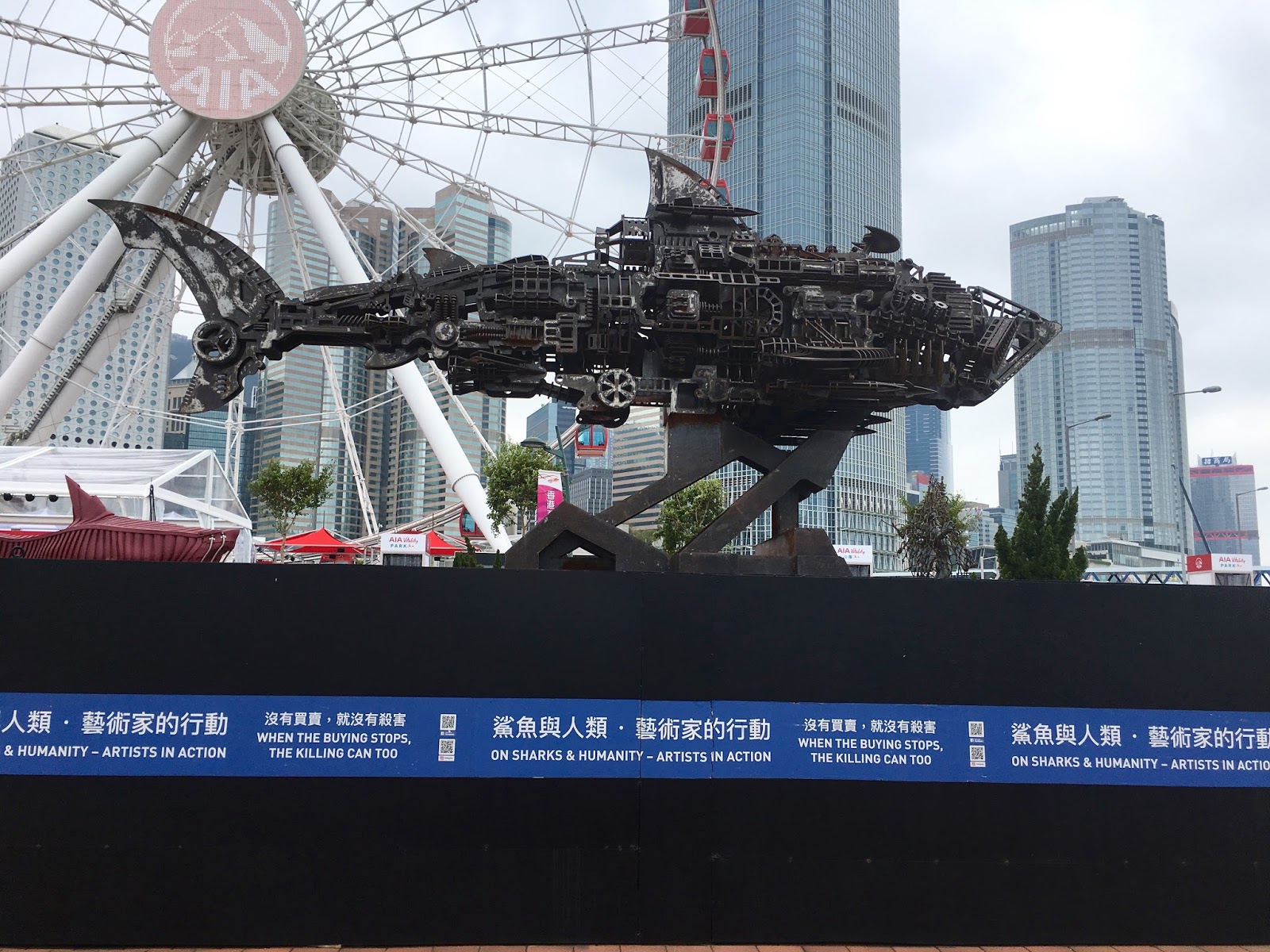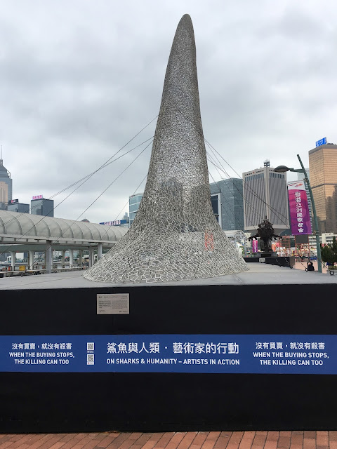 Best discovery of the day an Art Exhibition on the water front called On Sharks and Humanity- Artists in Action. Here are some of their impressive exhibits and the small message on the base of each art work says it all.