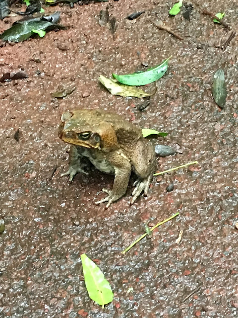 This is our fourth visit in about five years. A retreat in Lamington National Park, a place with a lot of history, an enviable position at the top of a plateau and a playground of rainforest to make anyone jealous. Our visit this time, booked months in advance, aimed to introduce birding friends from across the seas to the joys of Australian birds. The weather decided to play its own game and we drove up late on the Friday in the driving rain. As the rain eased off it then became a question of dodge the toad. They were massive and passive and dotted all over the tarmac.