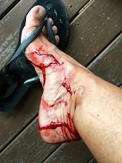 As we descended further into the gorge we crossed some women on their way up- the river was a torrent and the crossing to our circular walk was no longer possible. We descended nevertheless and the rain poured down on us as if there was a little weather system just waiting to catch us. The women had warned us we would get wet and wet we were. We turned back and started the journey back up. Not too steep and not too tiring and as the rain suddenly strangely disappeared, others made their joyful appearance. There was a reason to tuck my socks over my trousers but I had not counted on the socks weave been thin enough to let these blood seeking leeches in. For them it was a field Day! We arrived back at the resort and they had wormed their way into our shoes and socks and we were picking them off our ankles and half way up our legs. There is a large yuk factor in leeches but they are relatively harmless, if tenacious. We put one down the toilet bowl only to find it a considerable time later making a valiant attempt to escape it. They cause haemorrhaging on a precipitous scale and as I joined friends on the deck for a drink and bite I left big puddles of blood on their floor. The after math was more annoying as when the blood was finally beginning to coagulate, the itchiness sets in maddeningly and furiously. You will be relieved to know that after a few days it does abate and the wounds heal up and of course we will be back. Perhaps this time we will wait for a drier forecast.