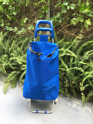 And here it is in true Greek colours – my trolley. Bought on the sly yesterday in town from a discount shop. Boys thought I needed a better quality one, but why I asked them ? The cover of this one is just as good for carrots and spuds as any other and if it breaks well again it means I am shopping way beyond my carrying capabilities.