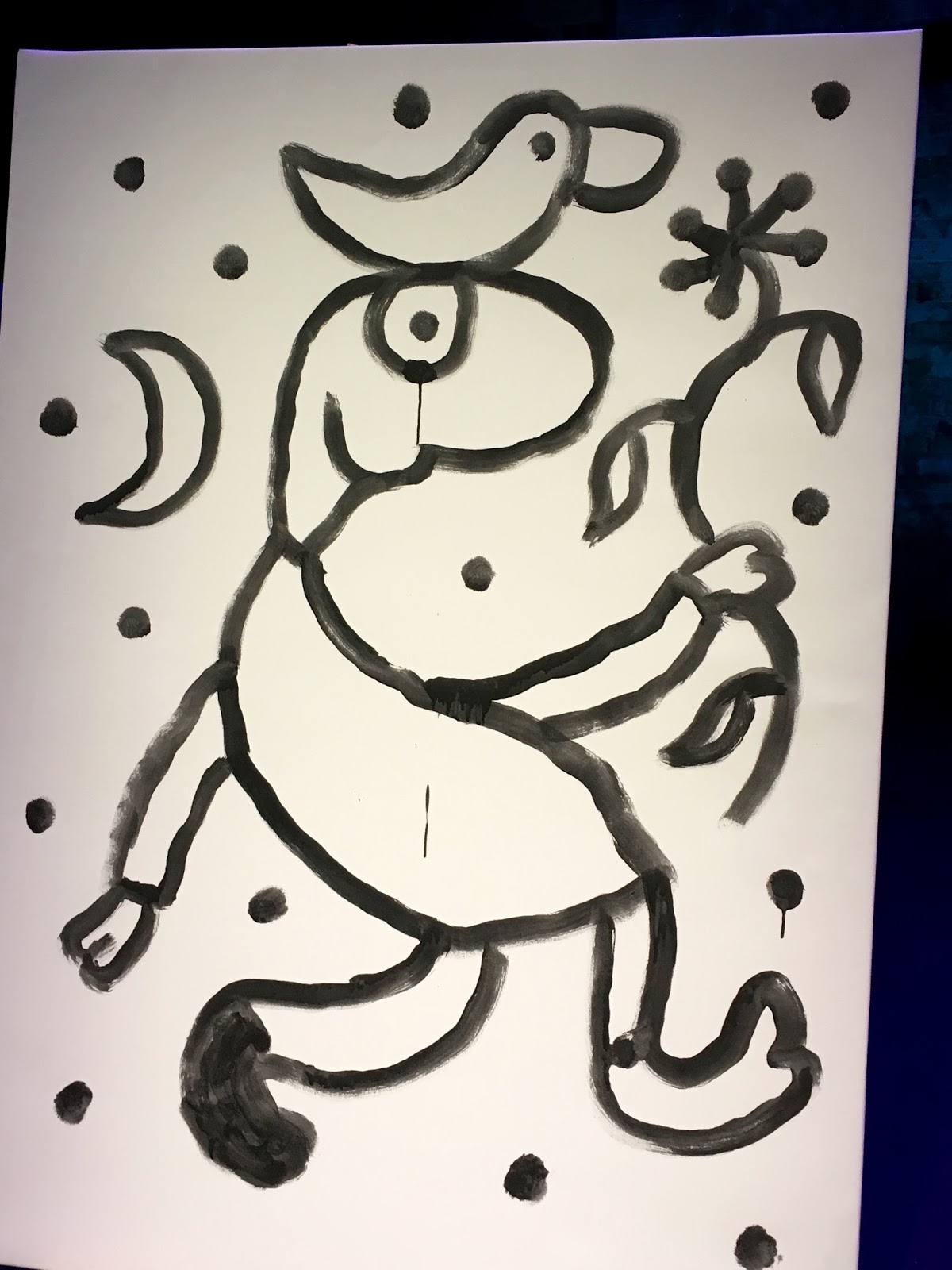 Music and song accompanied Leunig’s doodles and drawings.The Theme was “Nurturing the Earth” and it was a feast for the senses and the soul. In the course of the concert he created five canvases of his familiar and much loved happy humans who dance with light and laughter, love and lightness. His strokes were assured and his explanations humble, this is what he knows how to do, and he has been doing it for years, and people respond to them, and appreciate the sentiments expressed in each one.